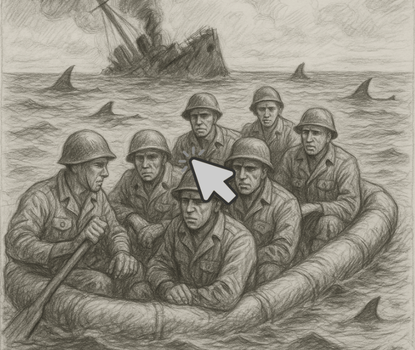 Then, when he was close to heading home, faced shark-infested waters after his ship sank.